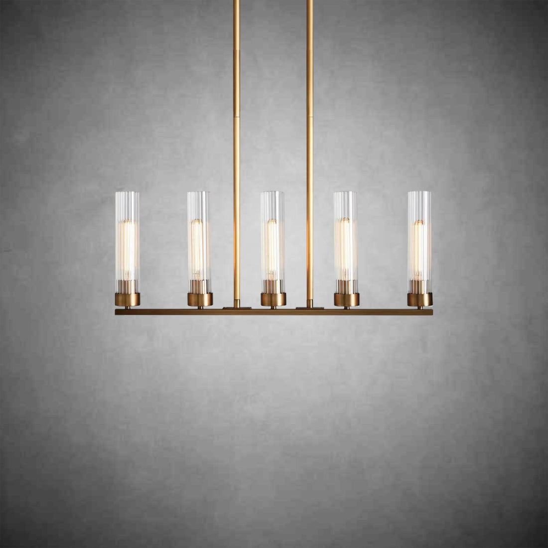 Modern Linear Chandelier with Clear Glass Cylinder Lights for Dining Room