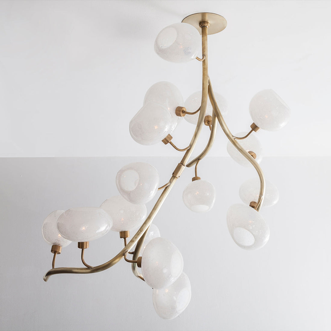 Modern Brass Branch Chandelier with Handcrafted Glass Globes
