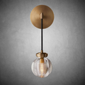 Made of glass and brass, this Wall Sconce is inspired by pearls, with intricate grooves carved into the glass pearls, creating shimmering layers of light that bring luster and make these pieces feel ethereal and intimate at the same time.