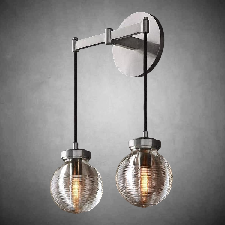 Overall: 11"W x 6"D x 17"HBackplate: 5" diam.Glass Drop (Each): 4" diam., 5"H; 4 lbs.Weight: 9 lbs.