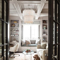 If you are hanging the chandelier above your dining table or kitchen island, you can also decide the size of the chandeliers based on the size of your dining table or kitchen island. We generally recommend that the length or diameter of the chandelier should be between 1/2 and 3/4 of the length of the dining table or kitchen island.