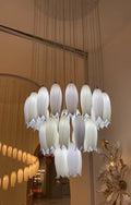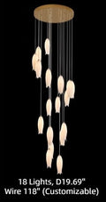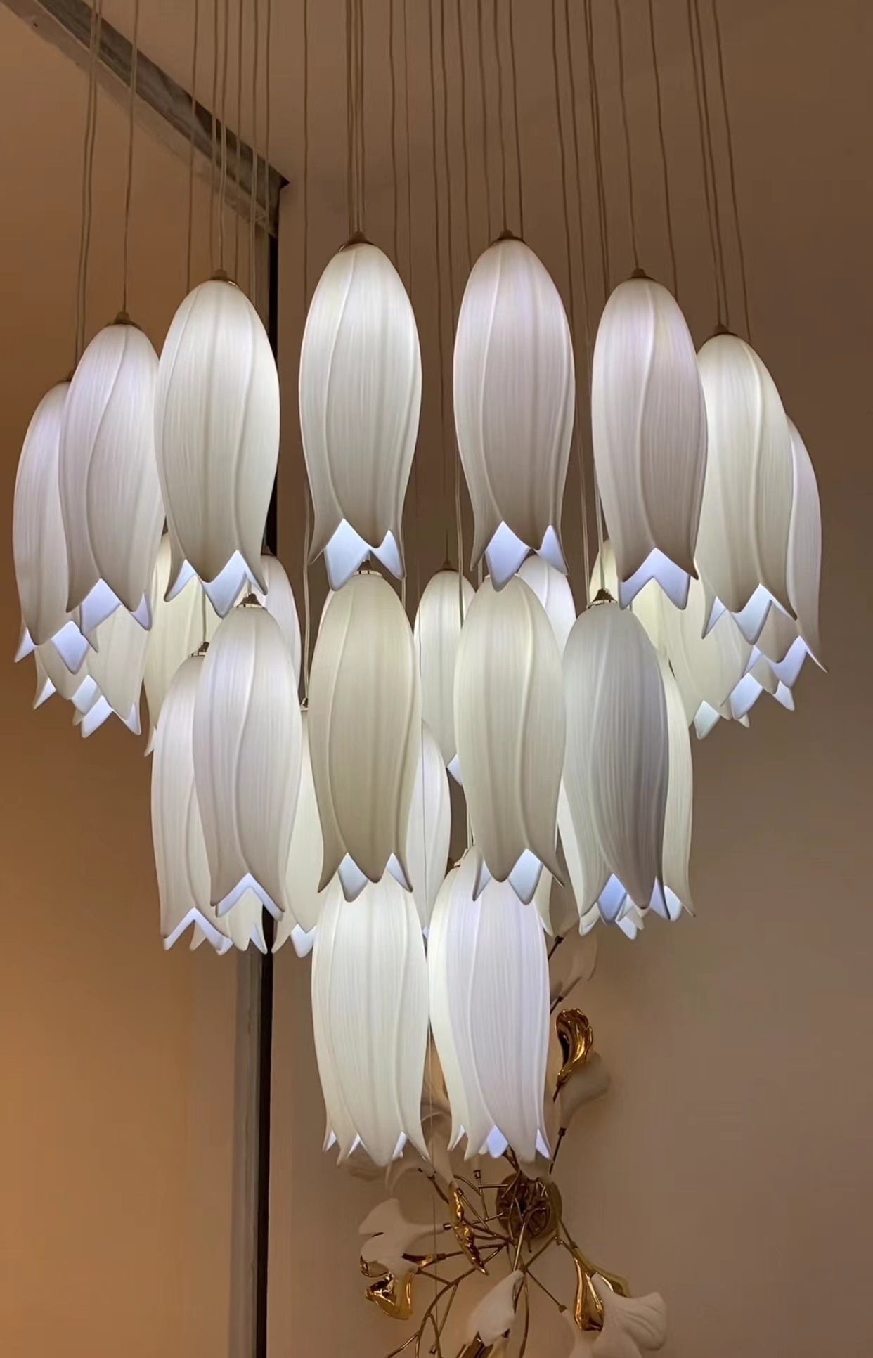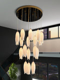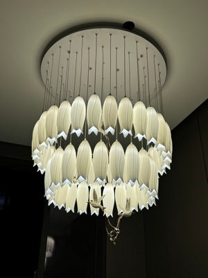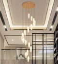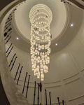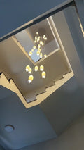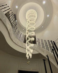 Besides the general rule that the chandelier’s bottom should be at least 7 and a half feet away from the floor. For two stories, what you also need to consider is how will it look from the second floor. In general, staircase chandeliers will be a good choice for space. In term of placing, below are two commonly seen guidance: