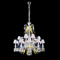 The unique feature of this crystal chandelier is the use of color. The flowers made of clear crystal bloom under the translucent light, with bright yellow natural drooping leaves, the whole is natural and quite interesting, the white cap with blue or clear crystal wall tube makes this lamp fashionable but not vulgar, traditional with elegance and refinement, this lamp we offer a variety of sizes to match your space needs, to ensure that your decoration a new look!