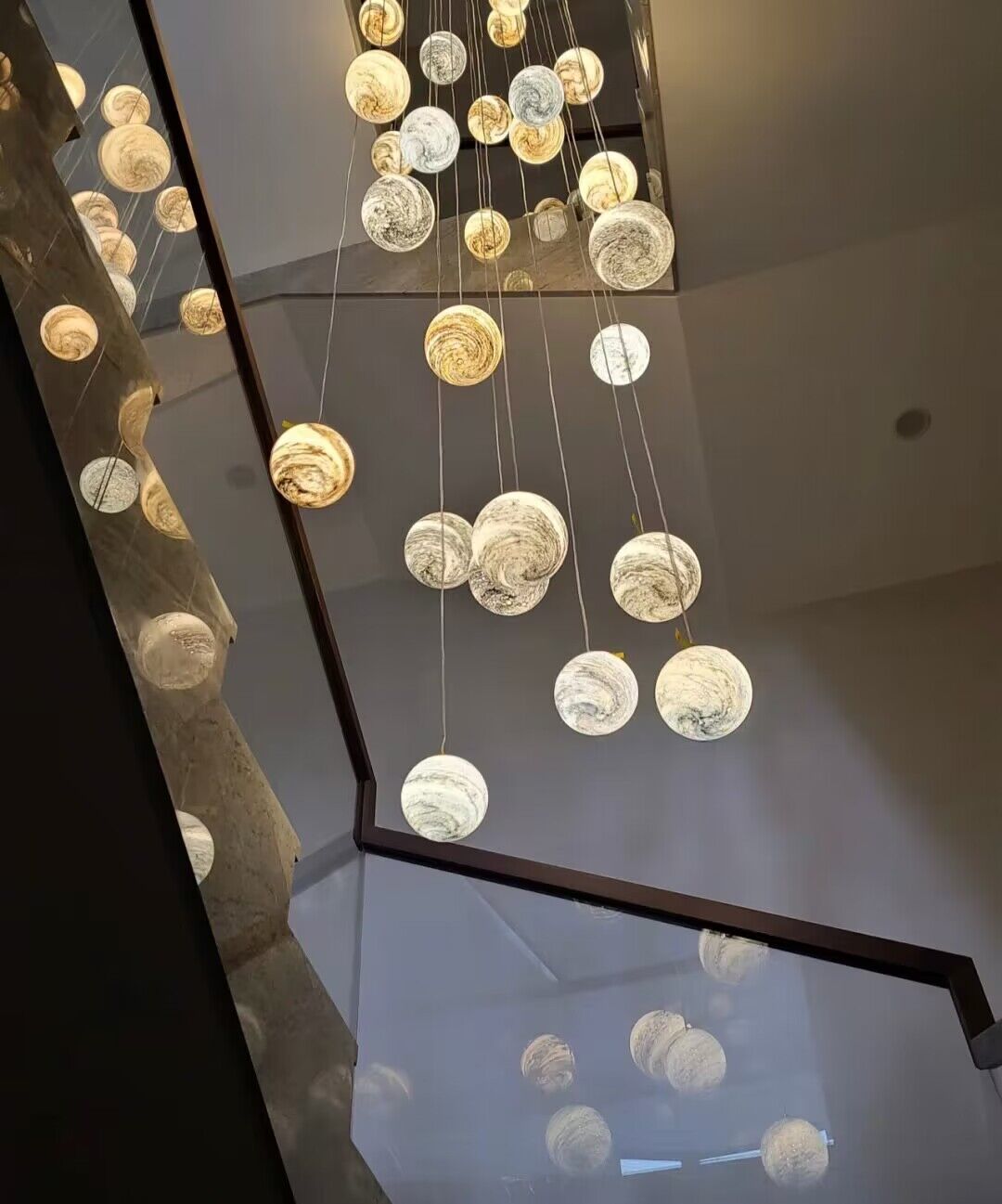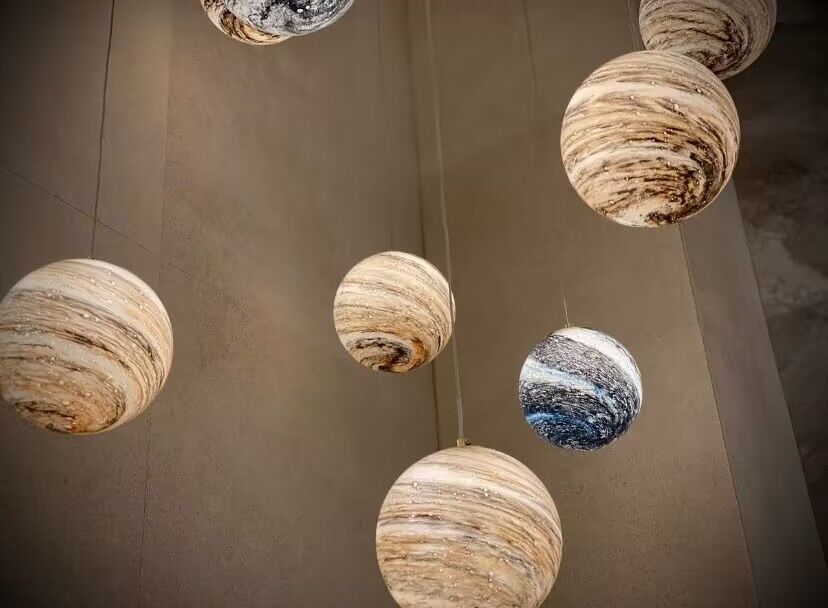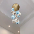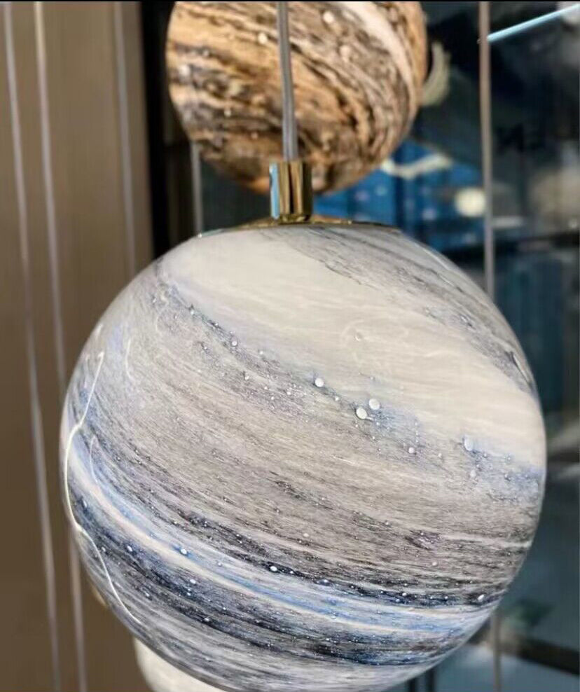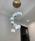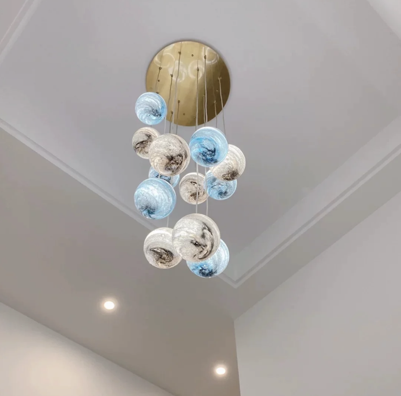 The body of this chandelier is made of high quality glass and iron material. Looking up is the starry sky: this planet long line chandelier, full of romance and childlike, is available in different colors: blue, tan, curry, and in combinations that can be matched at will. This artistic chandelier can provide a unique style for your interior decoration.Perfect for stairs,large dining room, kitchen island, bar.
