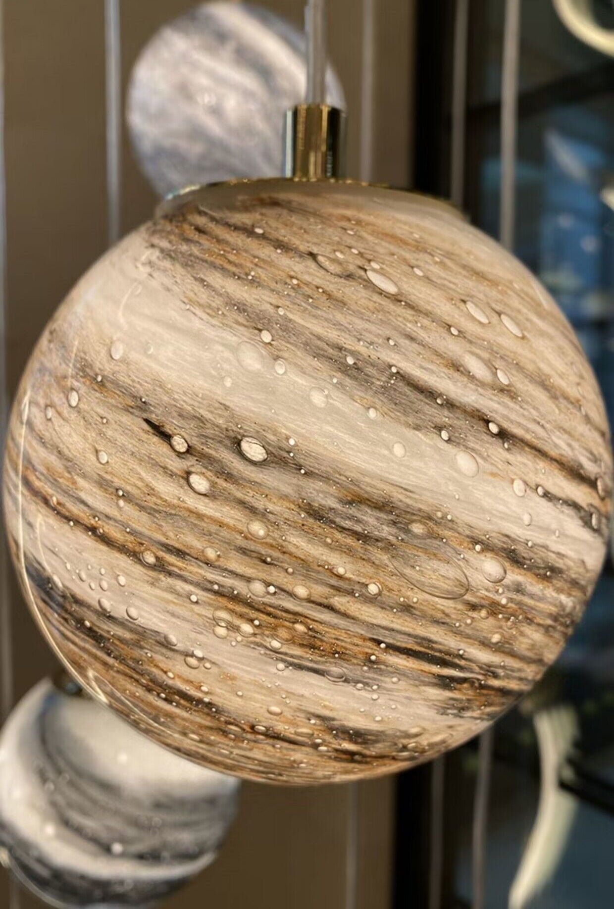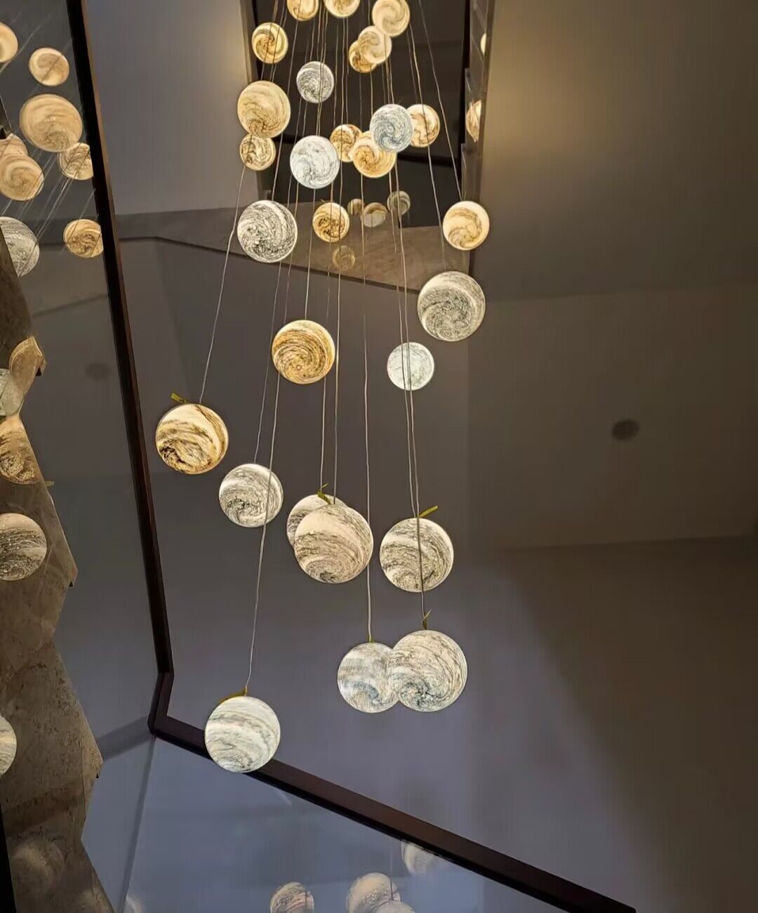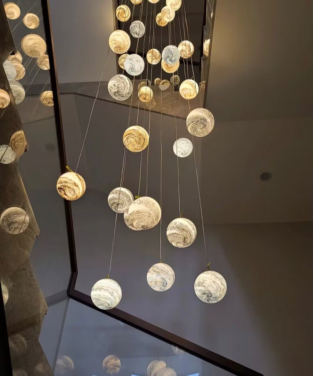 The body of this chandelier is made of high quality glass and iron material. Looking up is the starry sky: this planet long line chandelier, full of romance and childlike, is available in different colors: blue, tan, curry, and in combinations that can be matched at will. This artistic chandelier can provide a unique style for your interior decoration.Perfect for stairs,large dining room, kitchen island, bar.