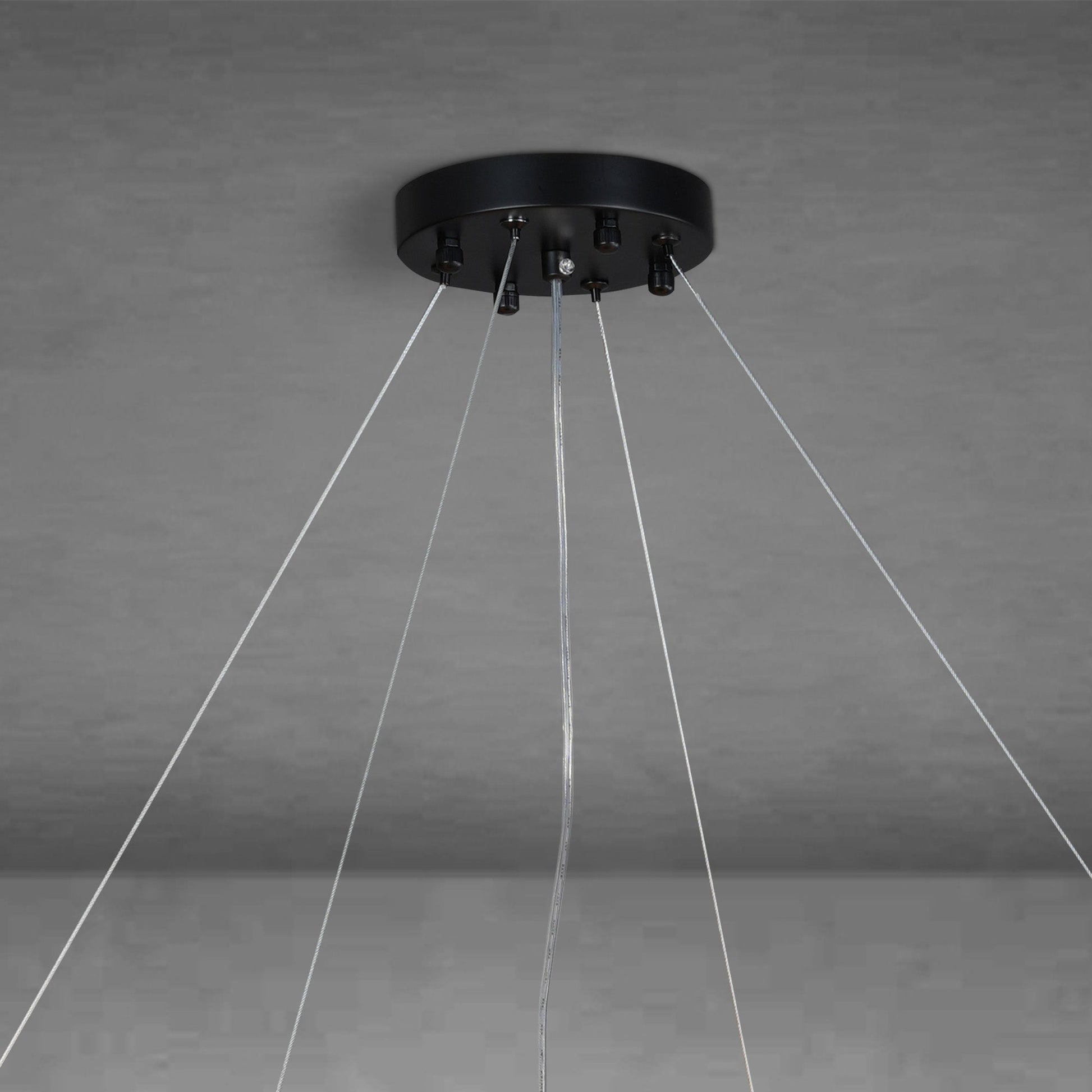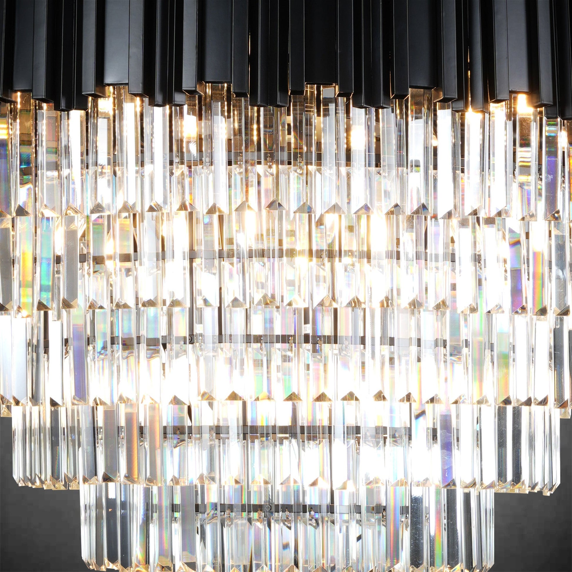 Sculptural and striking, this modern crystal chandelier brings dramatic elegance to contemporary interiors. Featuring a bold black circular frame adorned with premium K9 crystal accents, the design creates a captivating play of light and shadow when illuminated.