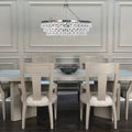 If you are hanging the chandelier above your dining table or kitchen island, you can also decide the size of the chandeliers based on the size of your dining table or kitchen island. We generally recommend that the length or diameter of the chandelier should be between 1/2 and 3/4 of the length of the dining table or kitchen island.