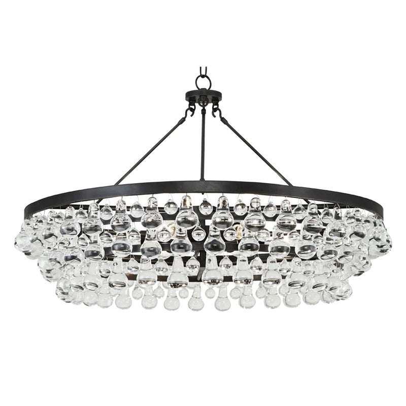 For example, let's say that you have a dining table with 60 inches in length. The chandelier should be between 30 (60 x 1/2) to 45 (60 x 3/4) inches in diameter or length (Same here 1/2 to 3/4 of the kitchen island length)