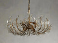 - Crafted from steel with brass plating and a burnished brass finish, accented with glass petals.