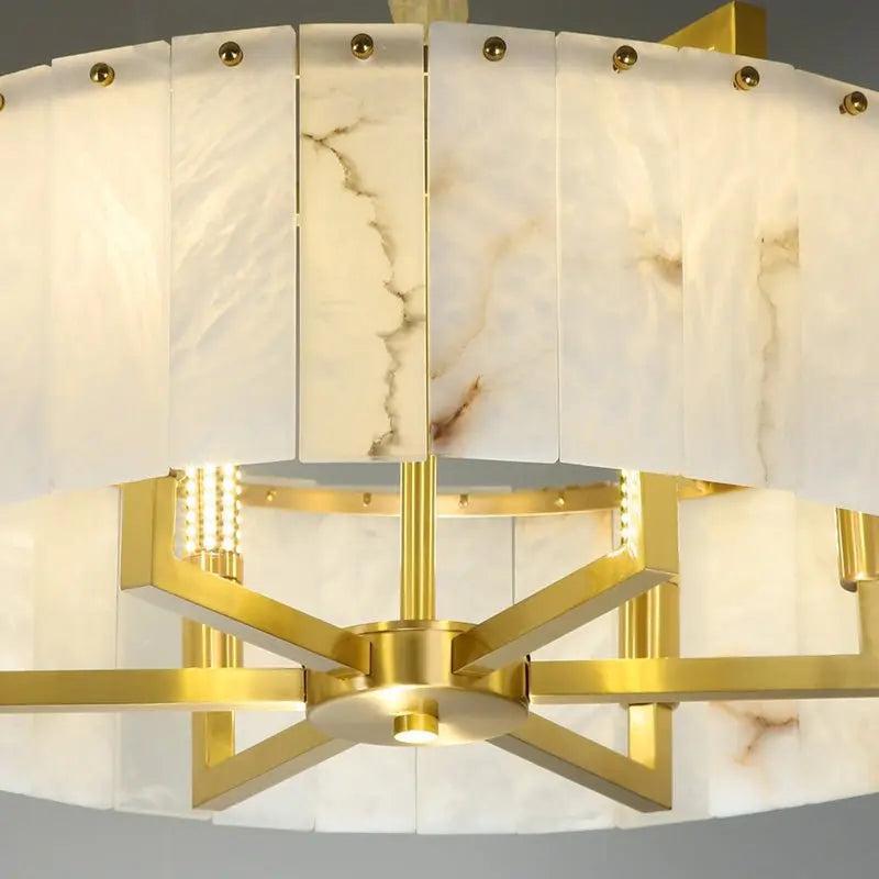 | This Alabaster Brass Round Chandelier Lighting is the perfect addition to any home. Its classic design features an elegant alabaster hue and solid brass construction. making it both stylish and sturdy. Perfect for illuminating any room with a warm. welcoming light. |