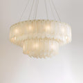 The Alabaster Cascade Tiered Chandelier is a splendid showcase of meticulous craftsmanship and lavish design. Hanging elegantly from a brass canopy. this chandelier boasts tiers of exquisite alabaster panels that form a stunning cascade of inviting light.