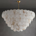 Designed to serve as the focal point of any room. the Alabaster Shell Chandelier casts a gentle. diffused light. perfect for creating a serene atmosphere in your dining room. living area. or entryway. The inherent characteristics of alabaster ensure that each shell possesses unique patterns and translucency. rendering every chandelier a one-of-a-kind masterpiece.