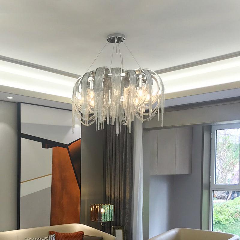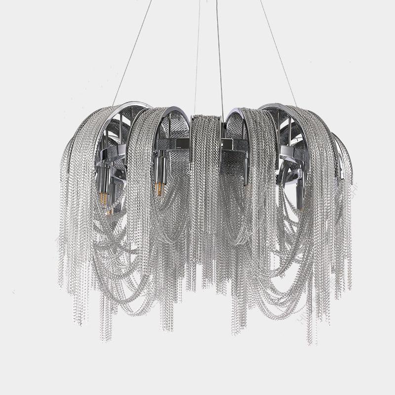 | Chandeliers Tassel Aluminum Chain Silver Chrome Modern Luxury Ceiling Light drawing from the wealth of knowledge and experience of craftsmen, truly elevates light to an art form. Using a unique combination of precious materials, artisan craftsmanship, respect for tradition and cutting edge technology,includes unique, luxurious heritage pieces that define a new period of Italian craftsmanship. Volver linear chandelier design combines thin nickel chains with the latest in LED technology to create a light that is both elegant and modern. |