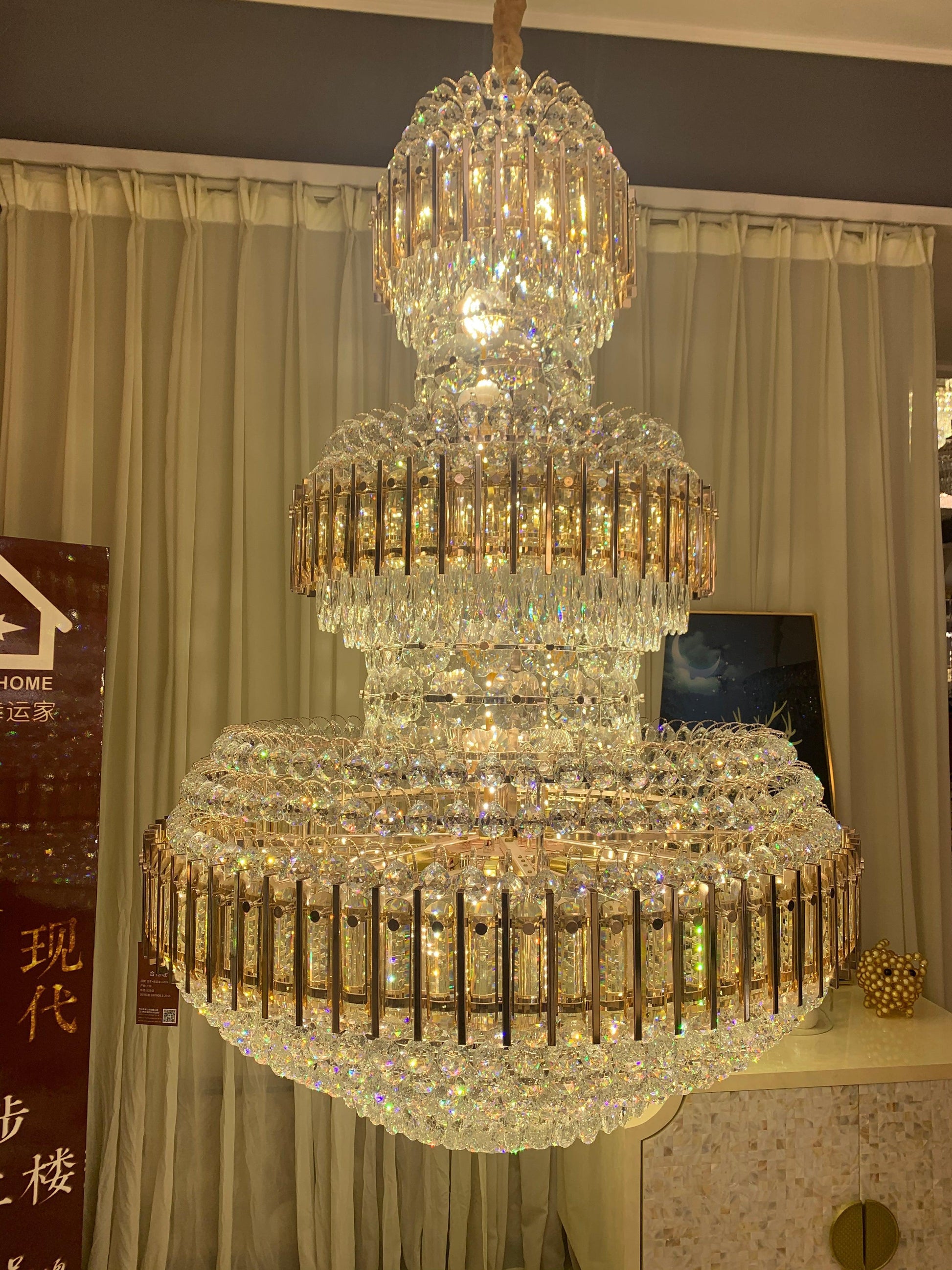 American Luxuary multi level crystal chandelier hotel lobby hall living room
