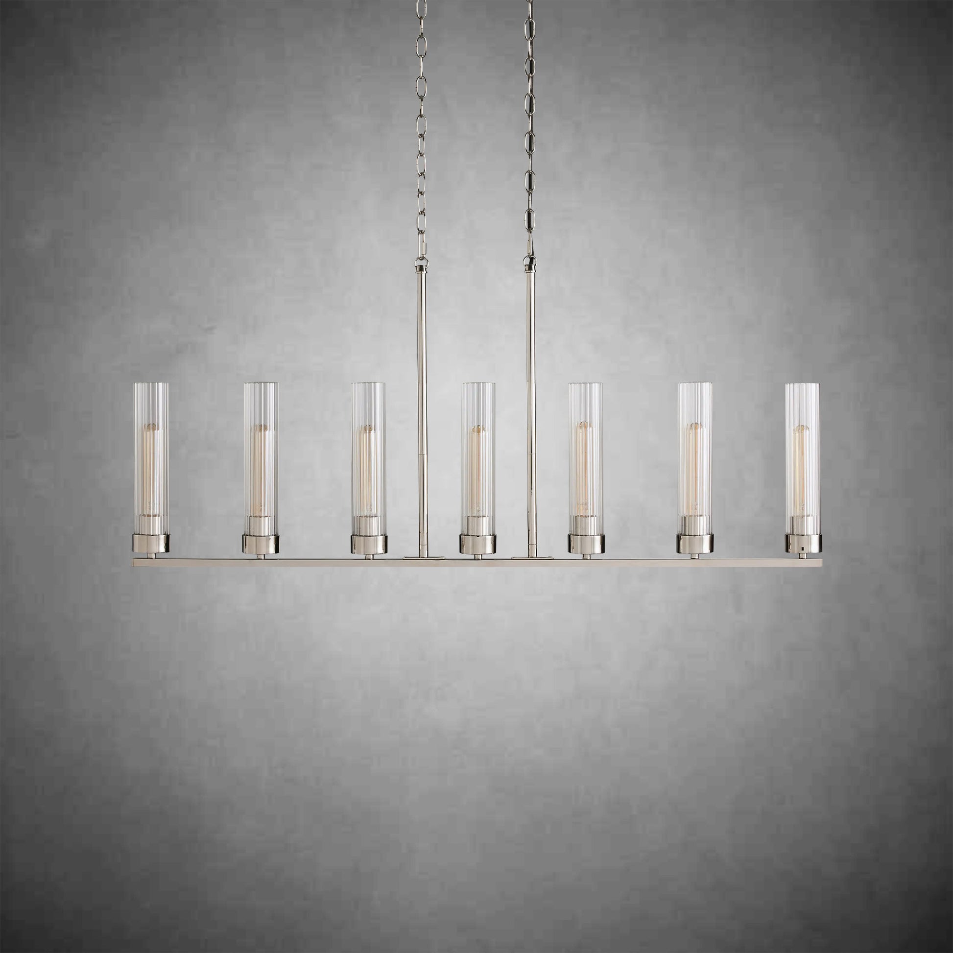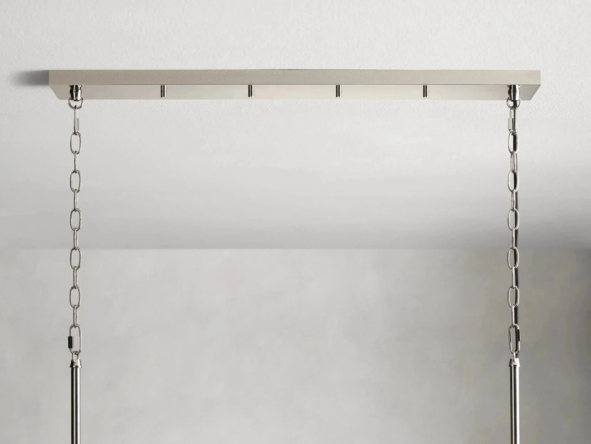 5-Light: 31.5" Width x 4.5" Depth x 12.25" HeightWIDTH 31.5" DEPTH 2.5" HEIGHT 12.25" WEIGHT 13.98 LBS NUMBER OF SOCKETS 5 MAXIMUM HANGING DISTANCE 150.11" CHAIN LENGTH 108" CANOPY DEPTH 4.5" CANOPY WIDTH 10"