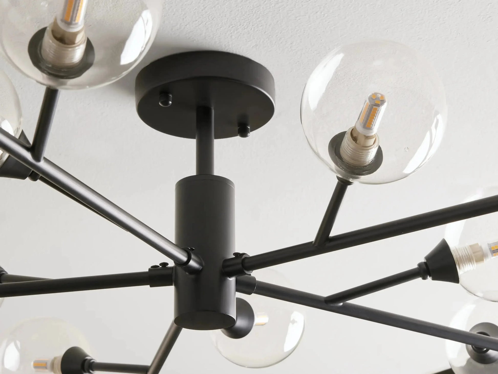 WIDTH 36" DEPTH 36" HEIGHT 10" DIAMETER 36" WEIGHT 7 LBS NUMBER OF SOCKETS 12 MAXIMUM HANGING DISTANCE 9.8" CANOPY DEPTH 4.7" CANOPY WIDTH 4.7"