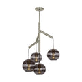 The Sedona Chandelier is a deconstructed modern chandelier that will add a touch of elegance to any space. The chandelier features glass globes suspended from a central pivot by contrasting textured fabric cords. The glass sphere is available in a variety of colours and has a smooth exterior. The inner surface of the sphere is made of artfully finished thickened glass bands.