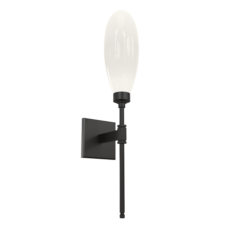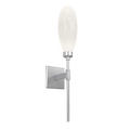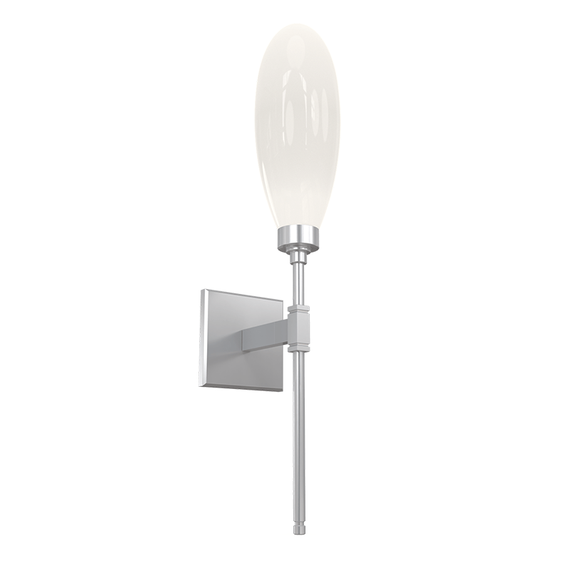 Inspired by a 21-inch high bay design, this LED-illuminated hand-blown glass shade reinterprets mid-century playfulness with glossy white buds.