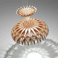 This Art Oriental Tone Hand-made Wood Dome Pendant Chandelier brings an air of oriental elegance to your living or dining room. An artful combination of wood and clean lined modern minimalism, this elegant chandelier is hand-made for unique and creative style. Its natural colors and material create an exquisite feel and warm ambiance. Perfect for any room.