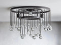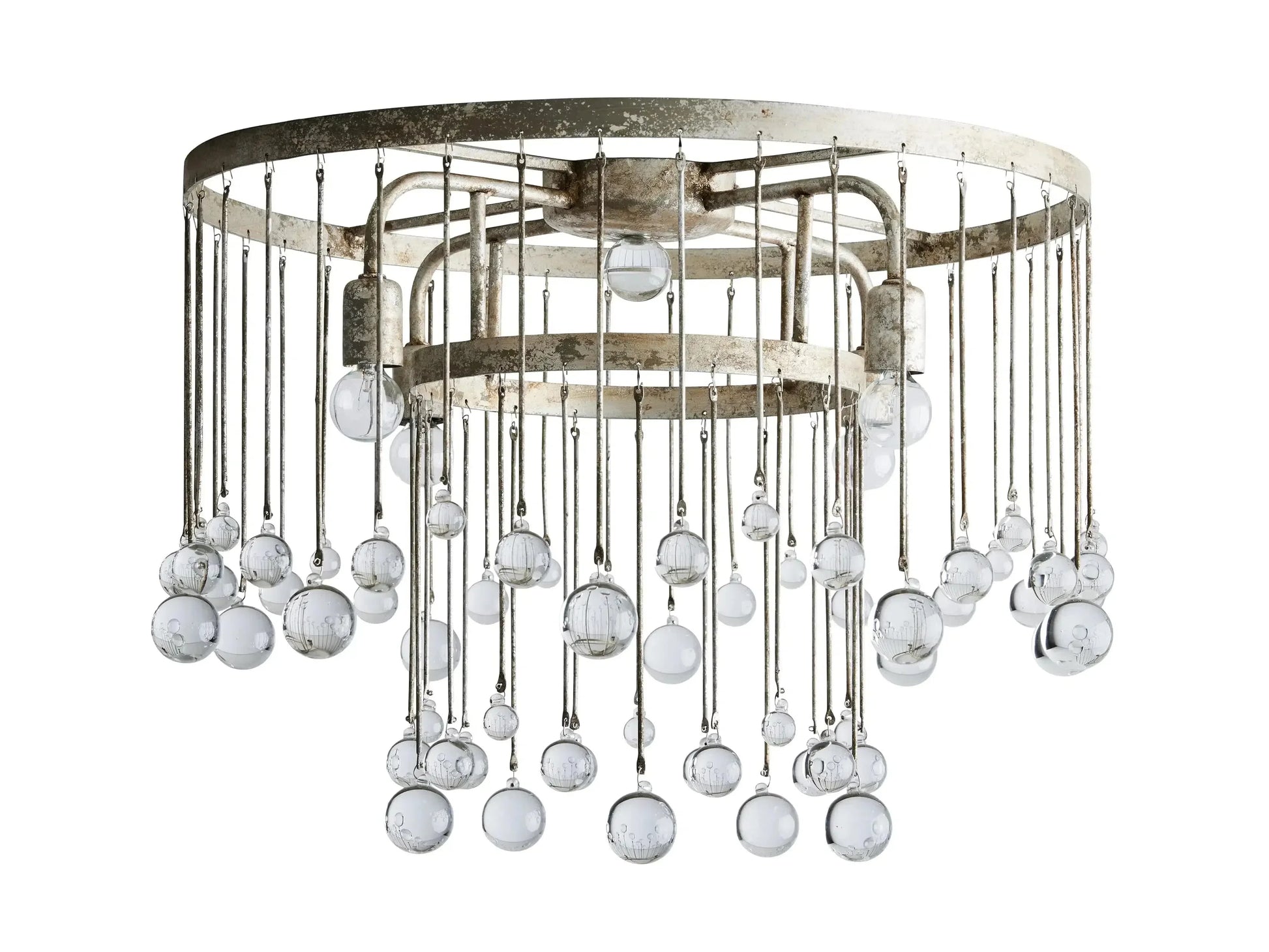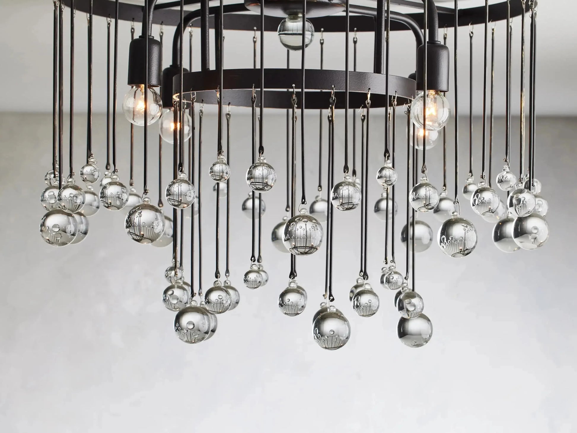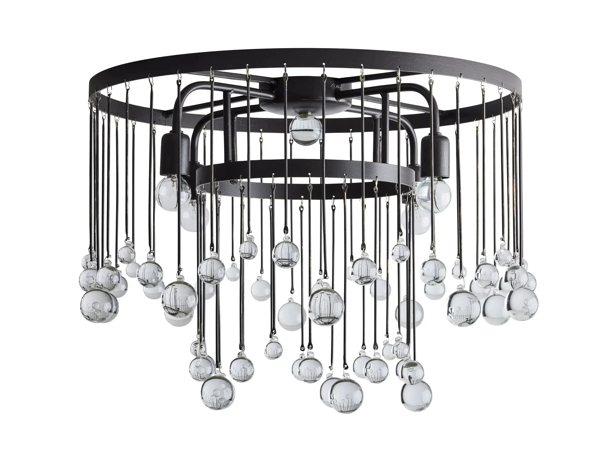 - Equally at home in an ancient French castle or a downtown New Orleans loft, our Aubrey Flushmount creates dramatic ambiance in any setting. Crystal drops hanging in varying lengths from an iron cage create the illusion of movement as they catch the light, refracting brilliant beams around your room.