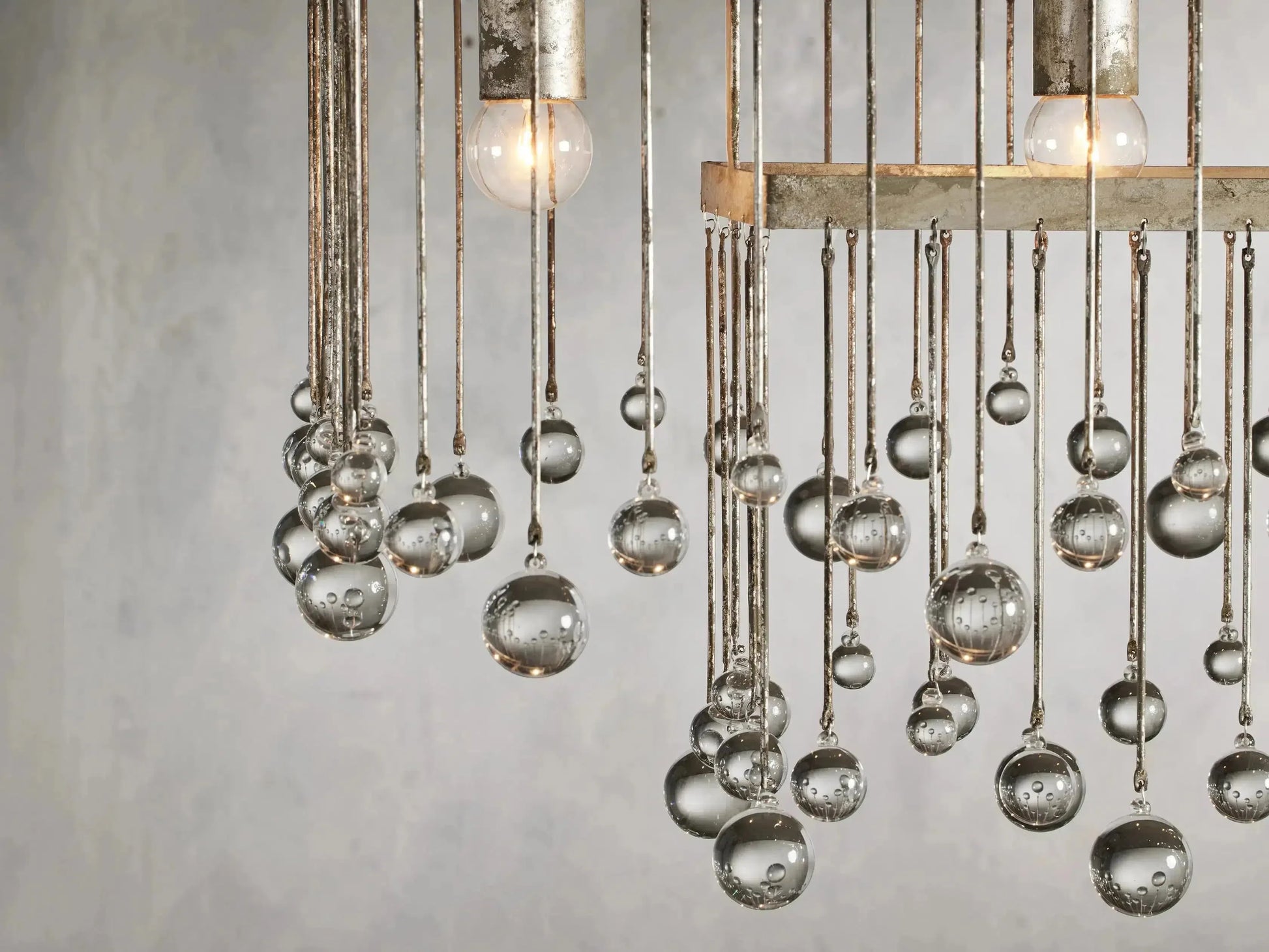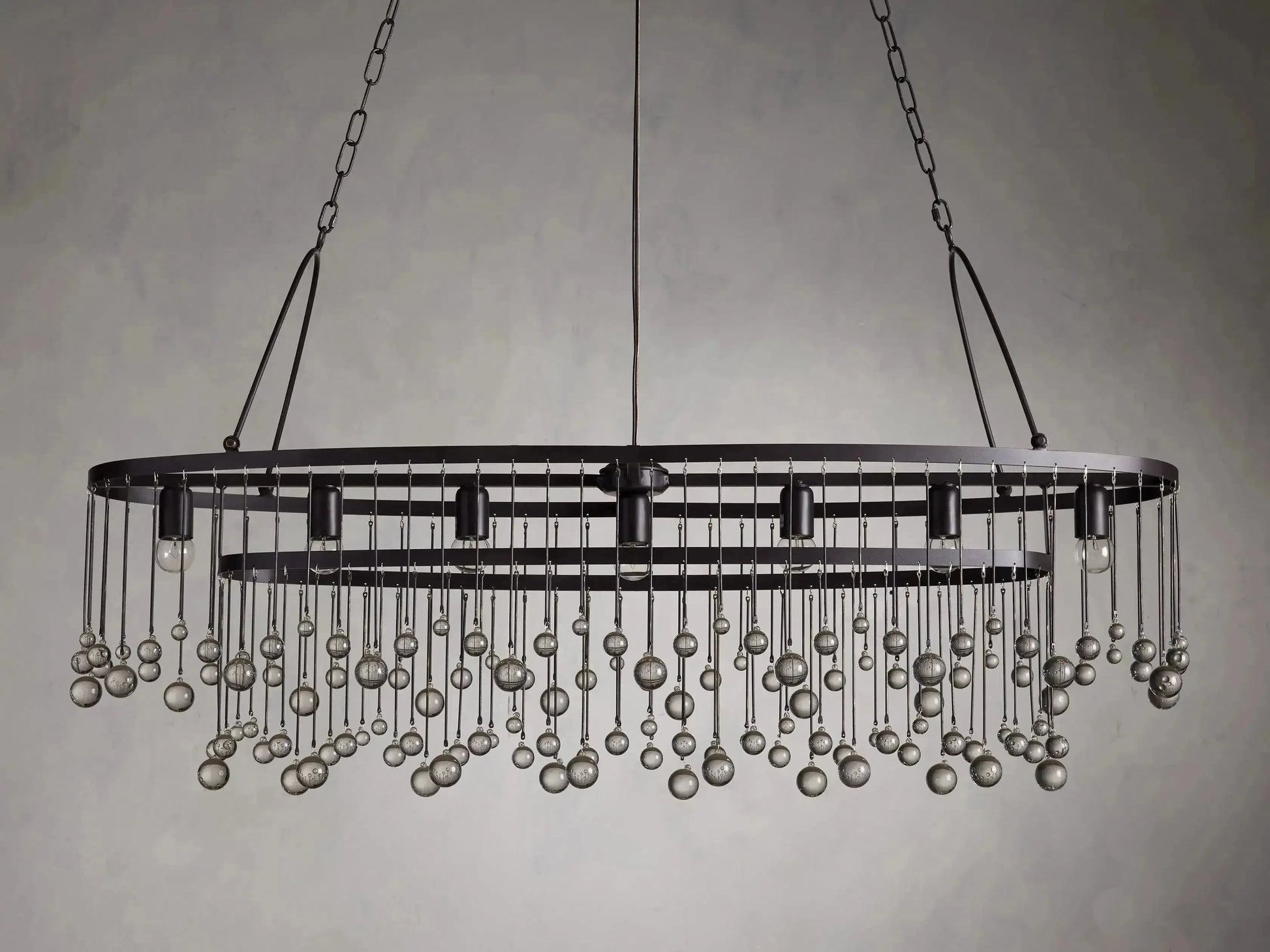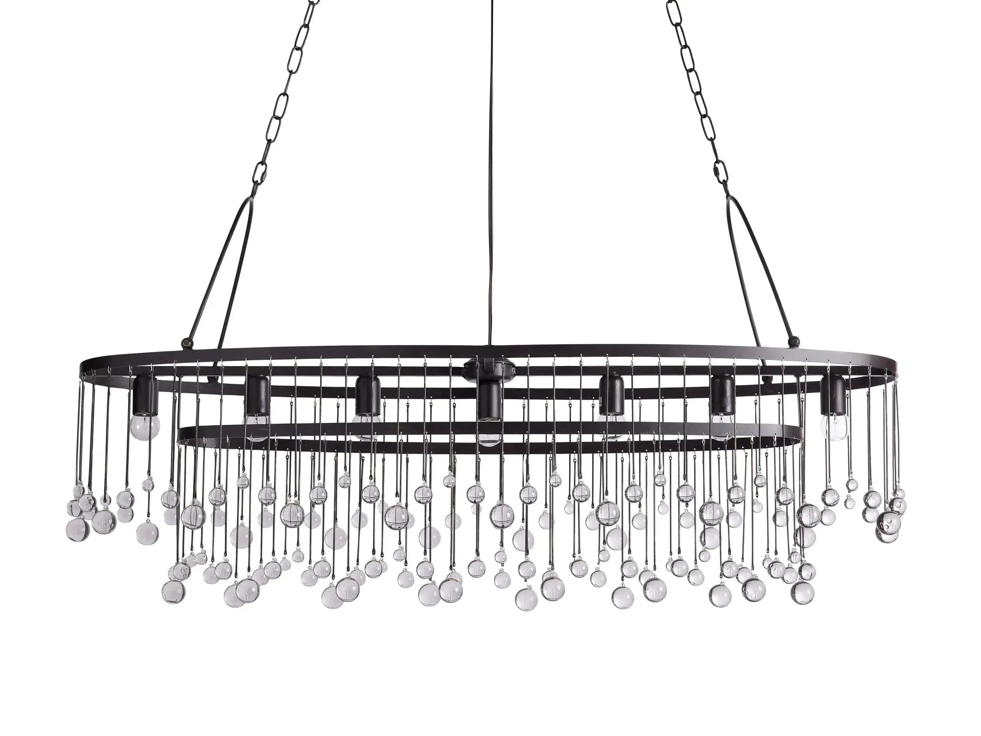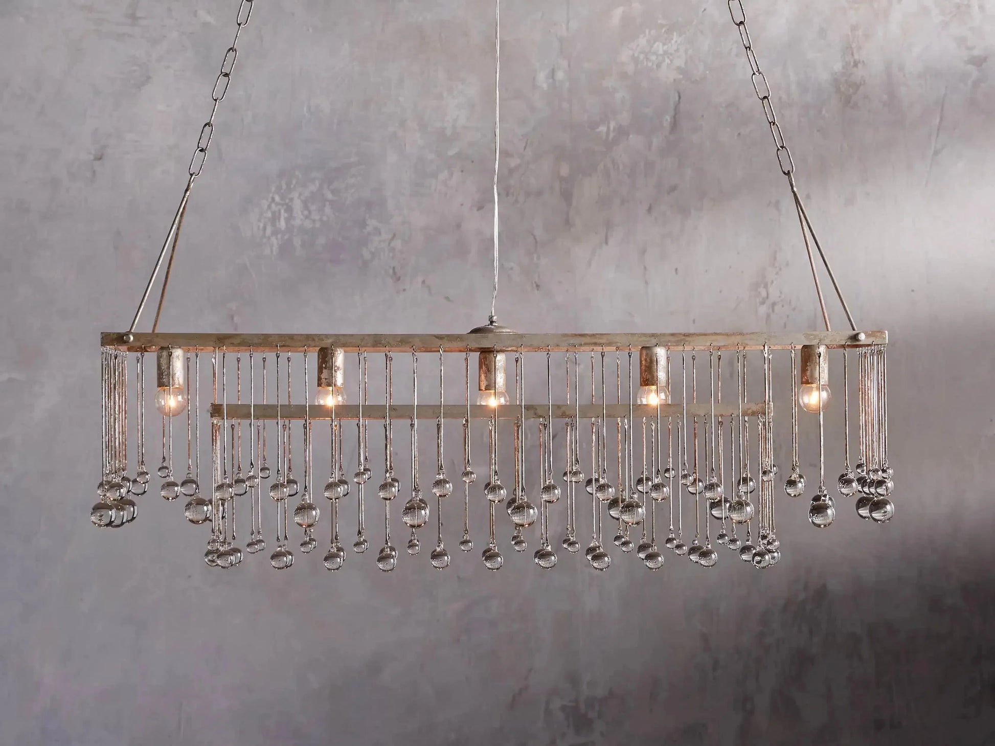 - Equally at home in an ancient French castle or a downtown New Orleans loft, our Aubrey Chandelier creates dramatic ambiance in any setting. Crystal drops hanging in varying lengths from an iron cage create the illusion of movement as they catch the light, refracting brilliant beams around your room.
