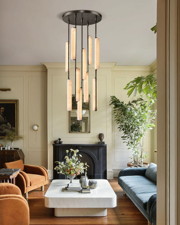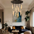 If you are hanging the chandelier above your dining table or kitchen island, you can also decide the size of the chandeliers based on the size of your dining table or kitchen island. We generally recommend that the length or diameter of the chandelier should be between 1/2 and 3/4 of the length of the dining table or kitchen island.
