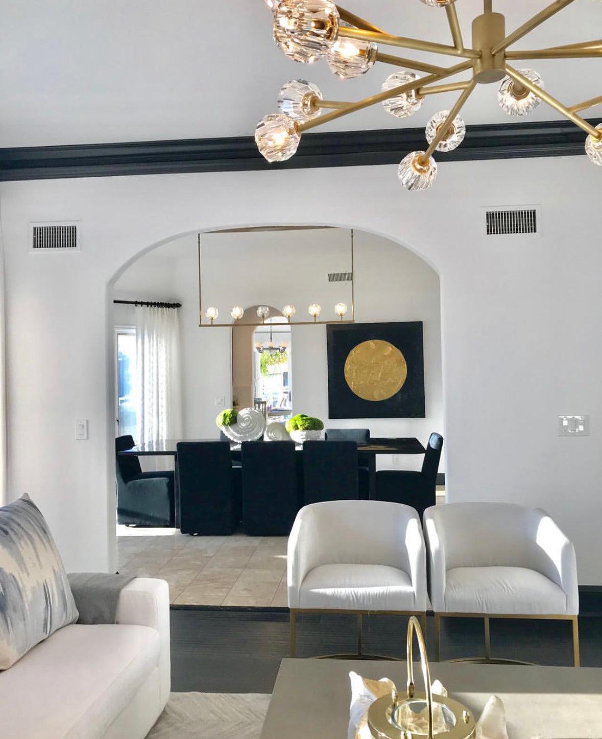 If you are hanging the chandelier above your dining table or kitchen island, you can also decide the size of the chandeliers based on the size of your dining table or kitchen island. We generally recommend that the length or diameter of the chandelier should be between 1/2 and 3/4 of the length of the dining table or kitchen island.