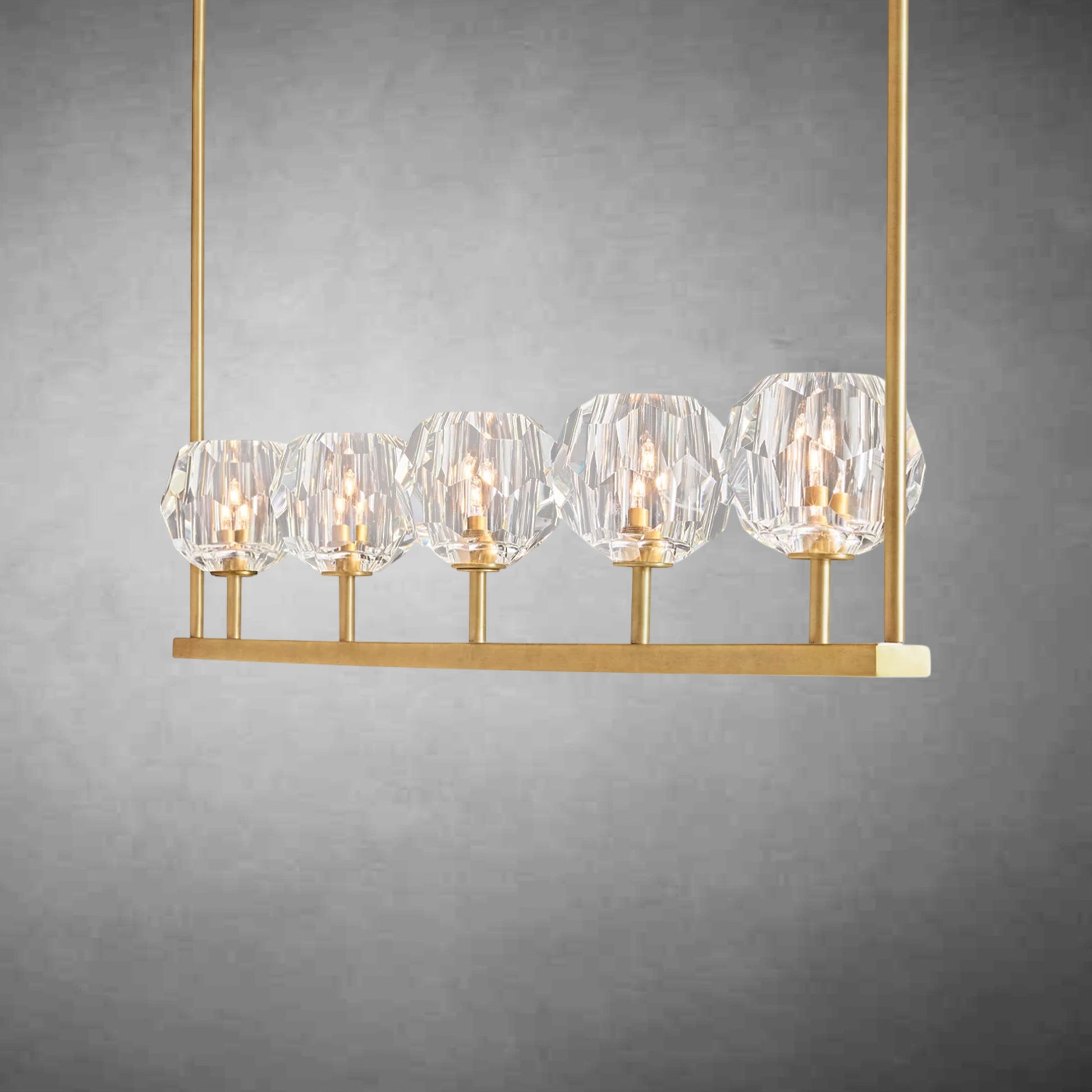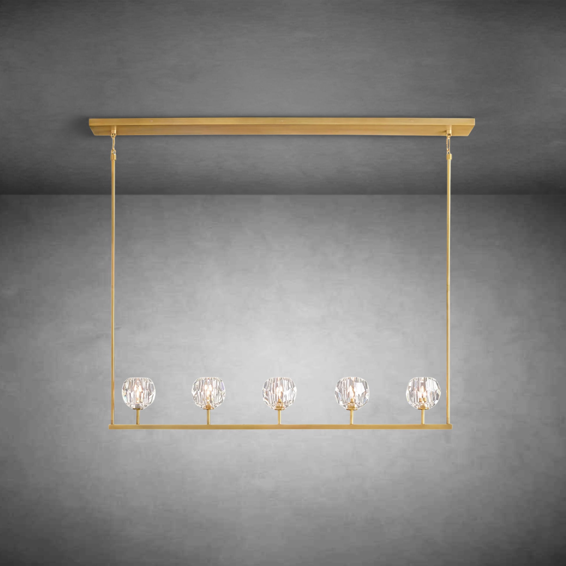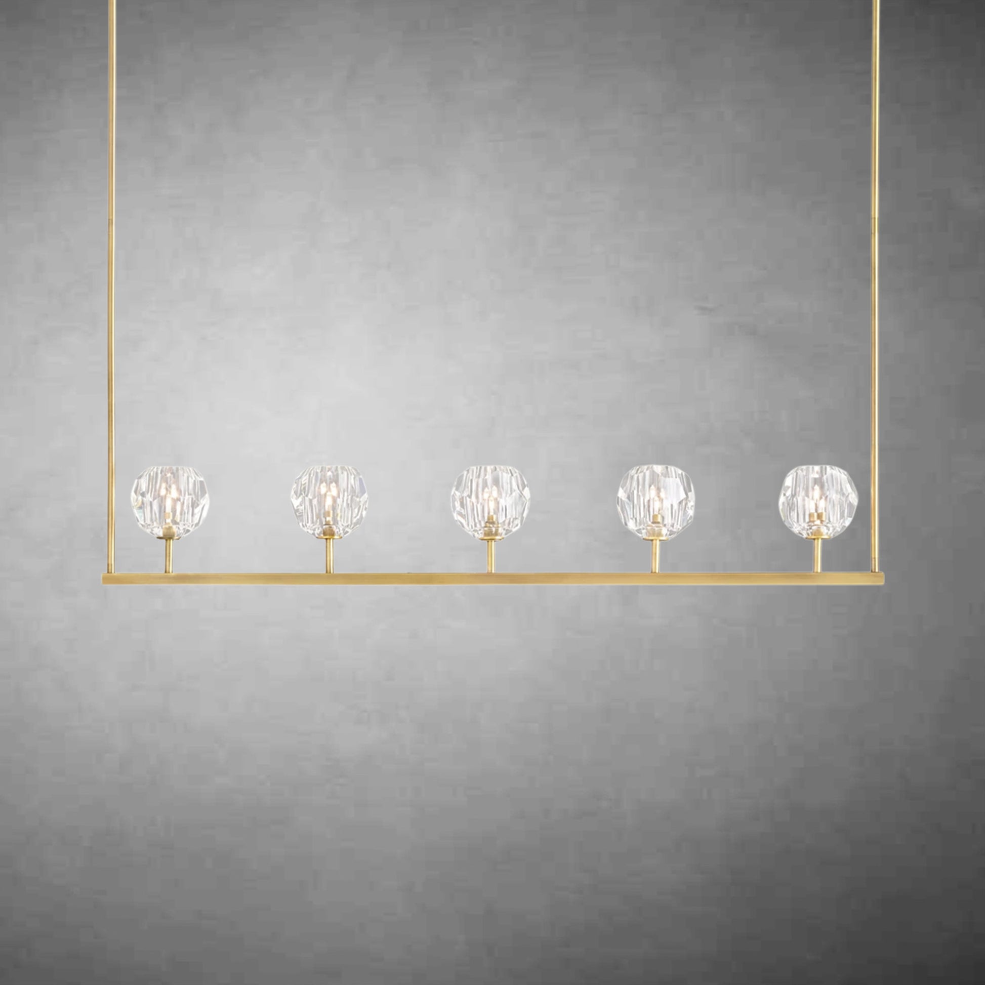 Crafted from solid brass and crystal glass, the Bille collection of luminaires exemplifies his passion for luxury materials and superior craftsmanship. Each faceted sphere is hand polished and honed to reflect and refract light while fully showcasing the minimalist design.