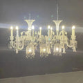 Composed of asfour crystal and 24pb glass. The materials converge to create a stunning interplay of light and clarity. The 14 lights. Compatible with e14/e12 bulbs. Cast a warm glow. Elevating the ambiance of your space. Finished in chrome. The metal accentuates the clear color palette. Contributing to its contemporary allure.
