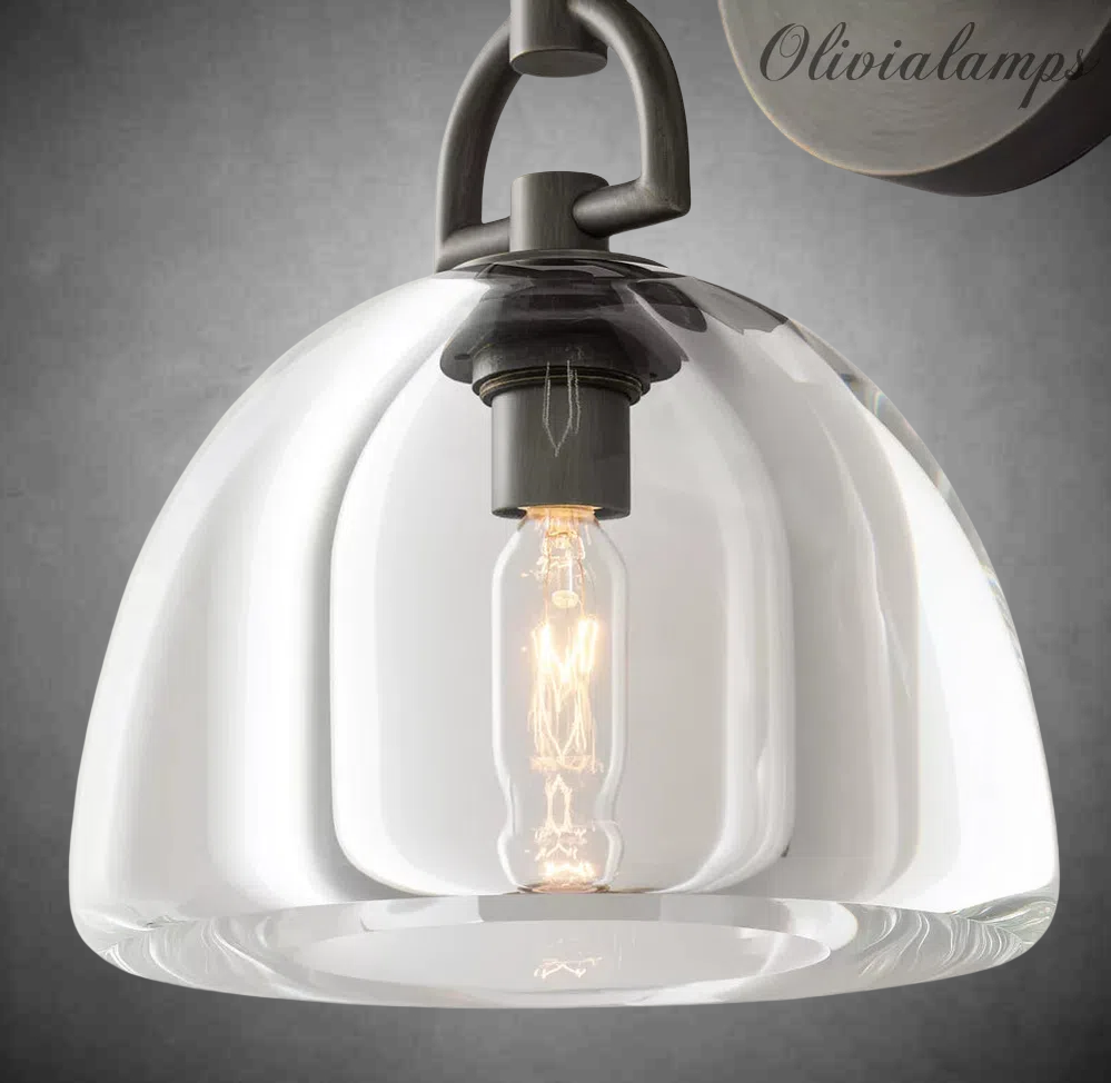 - Each substantial 1½"-thick glass shade is carved from a block of crystal, shaped by hand and lathe-turned over several days, finished by wet-stone grinding and hand polishing