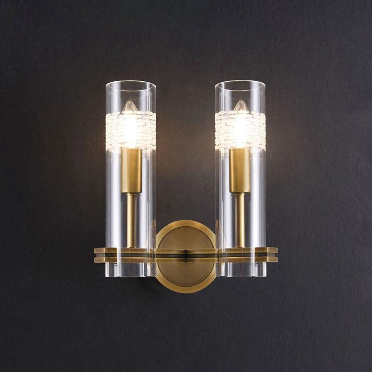 The Kaleidoscope Wall Sconce is hand-finished from solid brass. The crystal cylinder has hand-carved details that look like a kaleidoscope. The bright light shines through the crystal cylinder as if it were a candle.