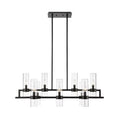 Uniquely modern, drawing inspiration from industrial styles to create a captivating fixture that blends matte black steel and glass, the Brio Branch Pendant Light features a round spoked frame for a minimalist, yet ornate look. Perfect for most styles of dining rooms, living rooms, stairwells, kitchens or hallways, this chandelier’s striking round frame is made of rugged iron with a delicate clear cylindrical glass shade.
