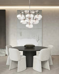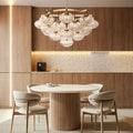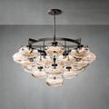 Voltage 220V-240V (Available) Material Blown Glass & Steel Light source color Warm white 3000K(Default) / Daylight 4000K Number of Lights 21 Light Source E12(included) Dimmable Yes Sloped Ceiling Compatible Yes Assembly Required Required Power Source (Hardwire) Professional installation recommended Application Home/Villa/Hotel/Living Room/Dining Room/Bedroom/ New-Old New Product Warranty 2-year Chandelier Body: 48" diam., 45"H