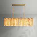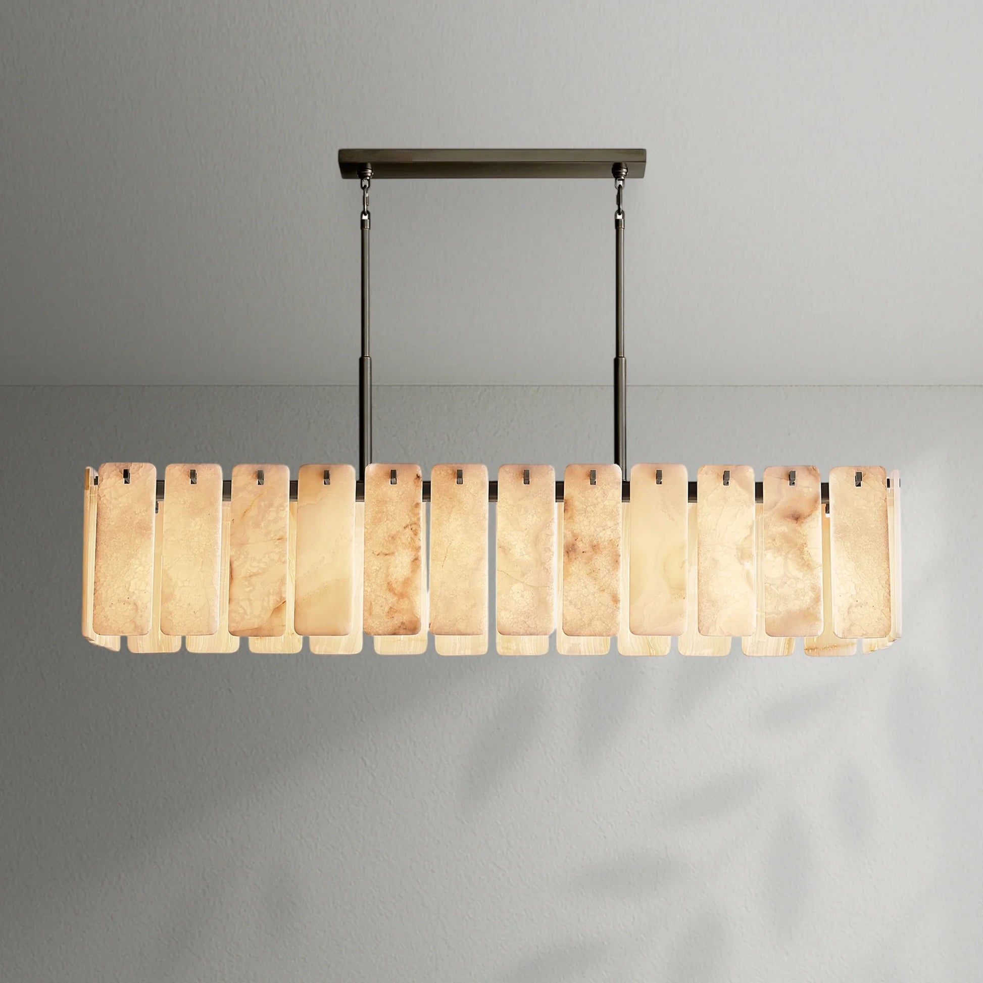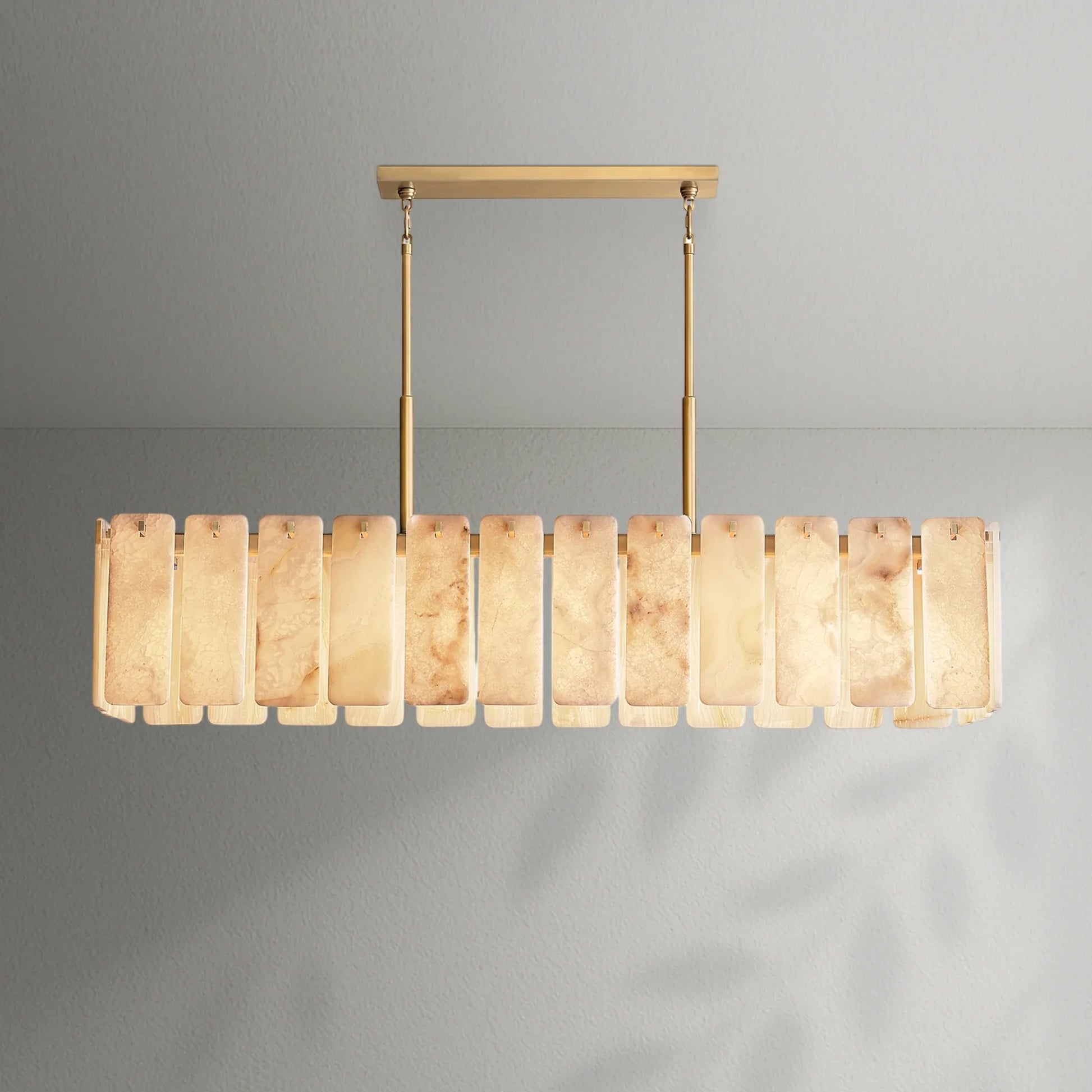 Designer Jonathan pairs the simple silhouette of Calametto with translucent handcrafted panels of solid onyx, showcasing the beauty of the stone. The thick onyx panel sits below the canopy, gently soft