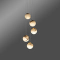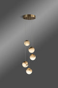 The Callisto fixture features brass and alabaster orbs that cascade through your interiors. Each alabaster sphere is hand turned and features a unique pattern and natural beauty.