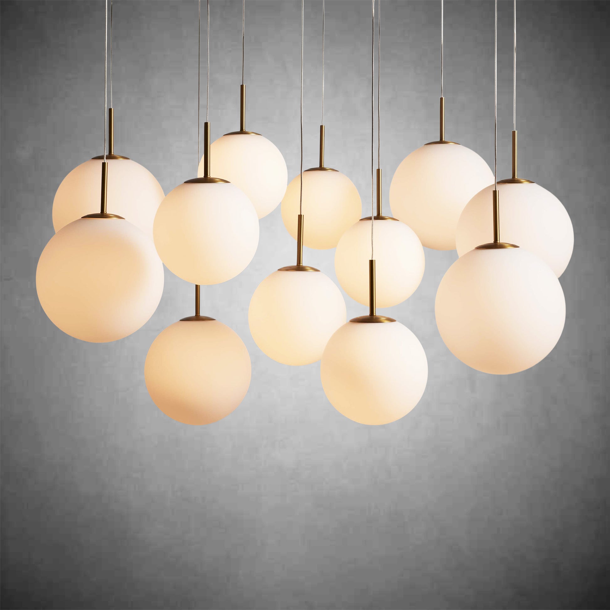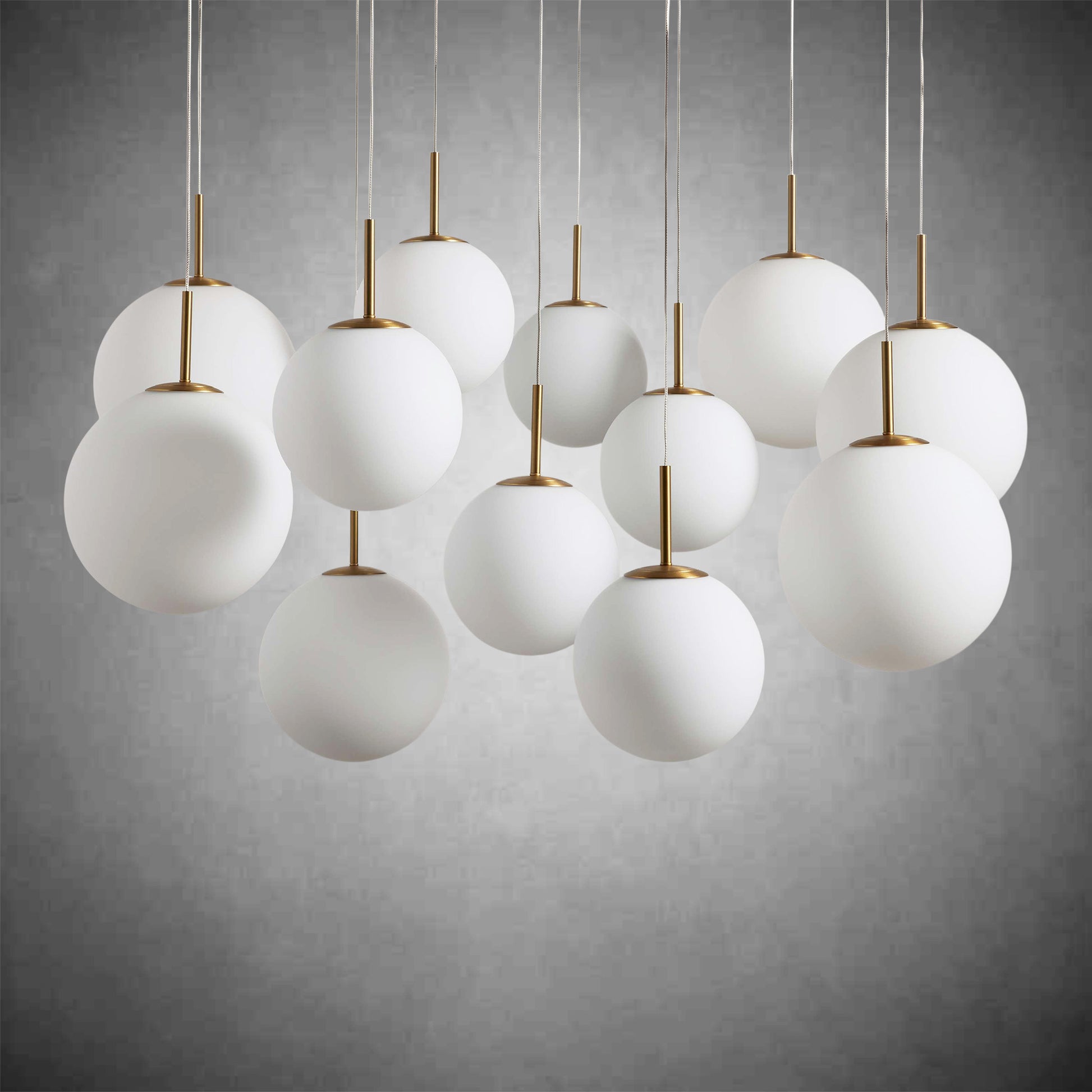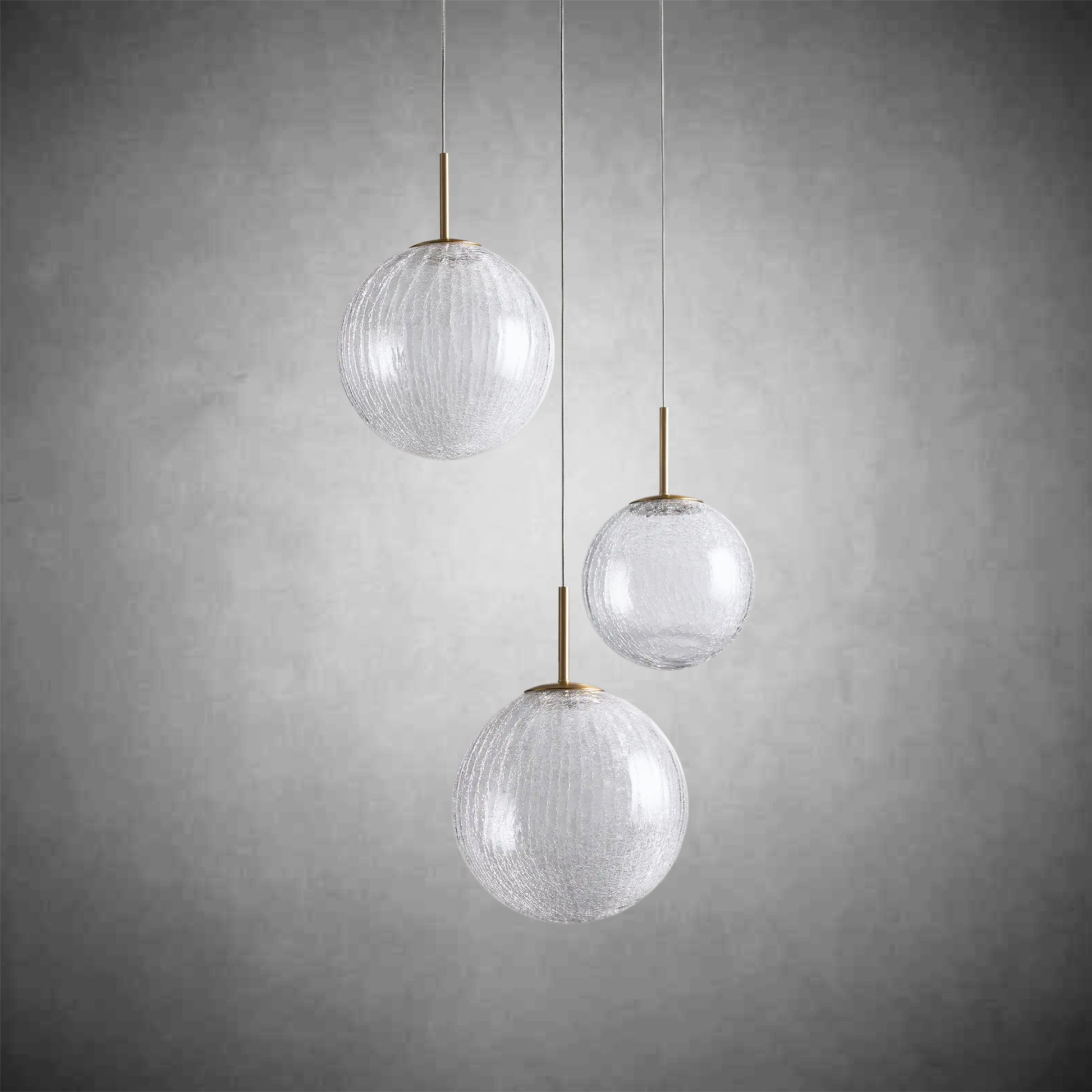 - Expertly crafted glass globes drop from modern satin brass hardware in our Casen Lighting Collection. Each globe is mouth blown by our artisan partners and features an integrated LED light that illuminates the glass from within, bringing a unique, organic touch into your home.
