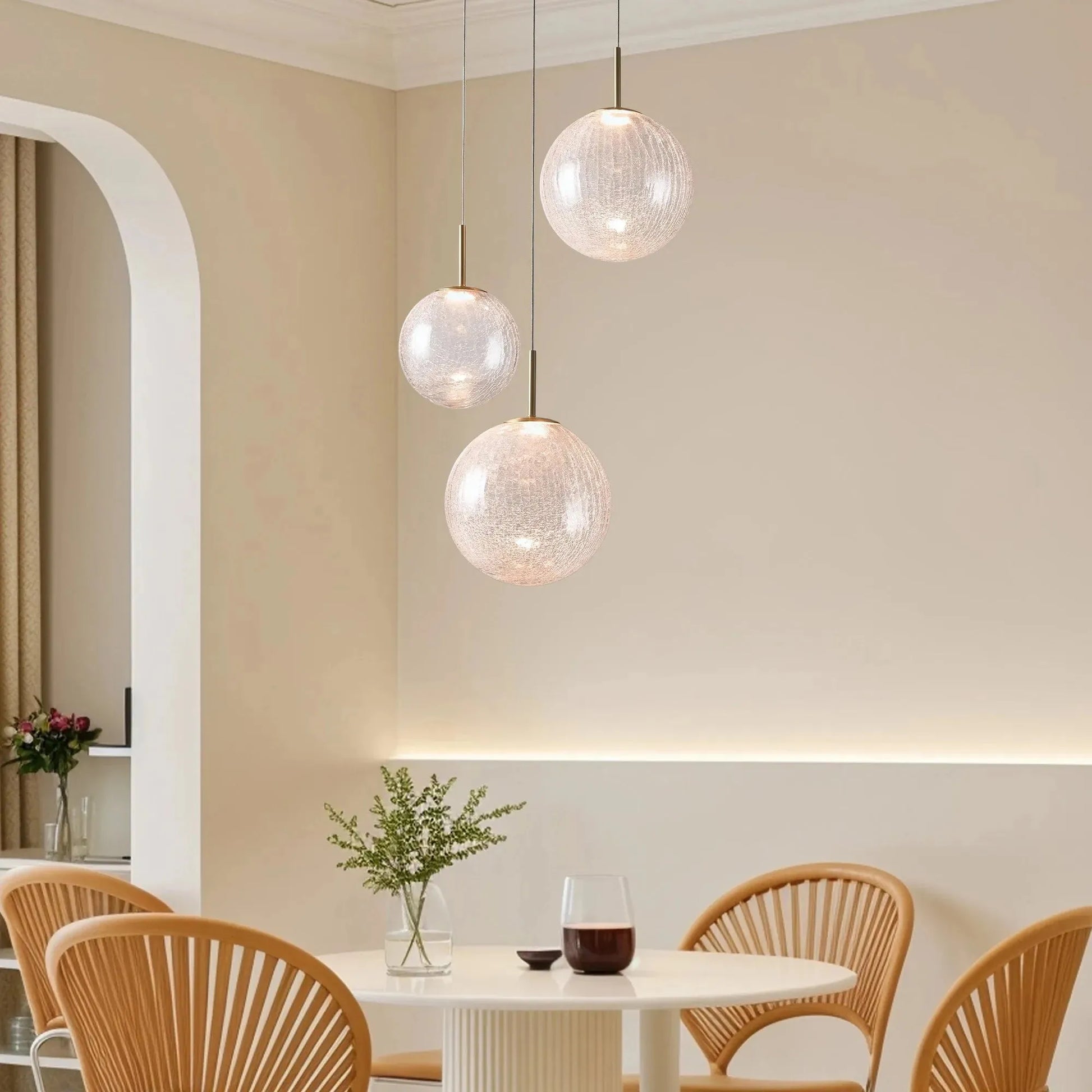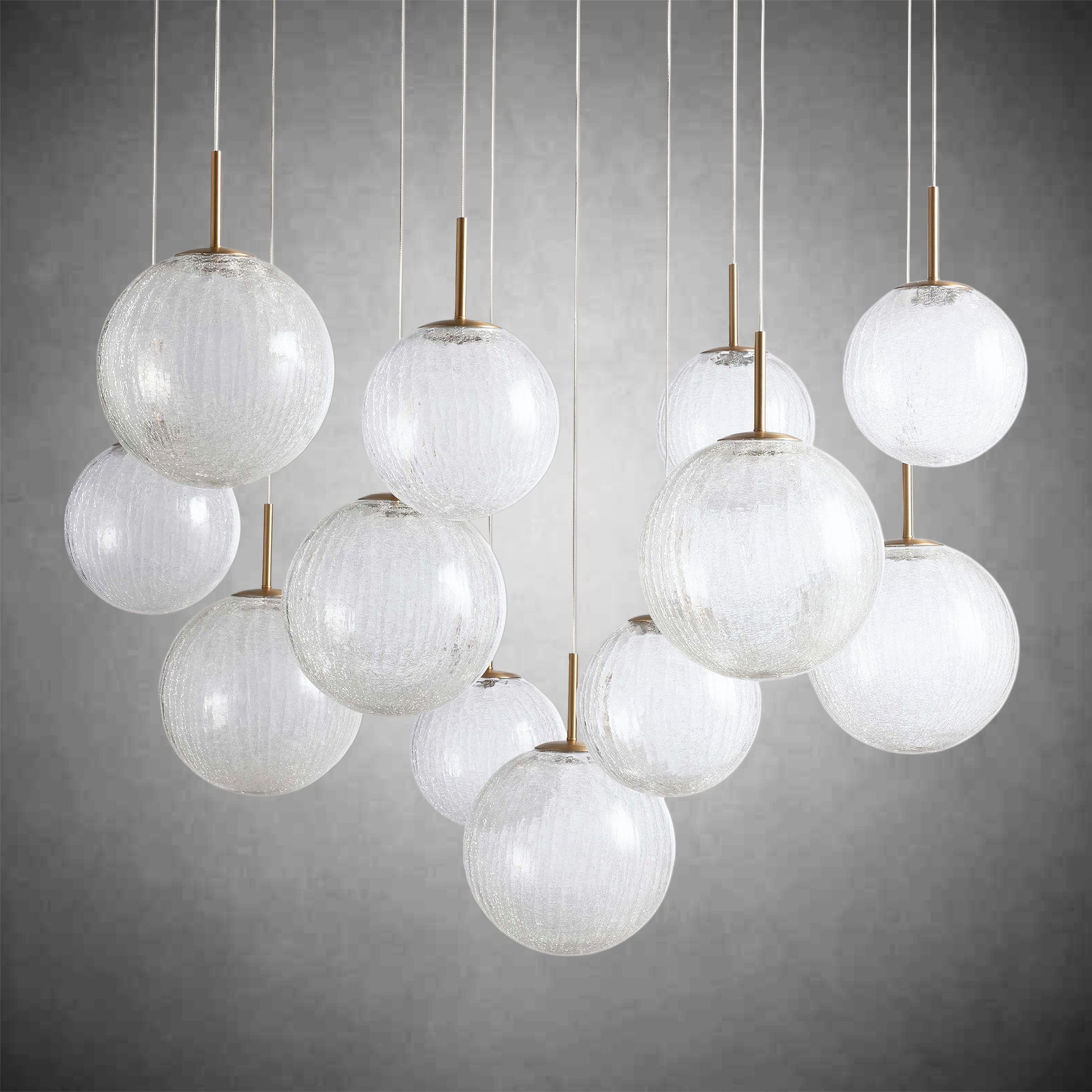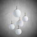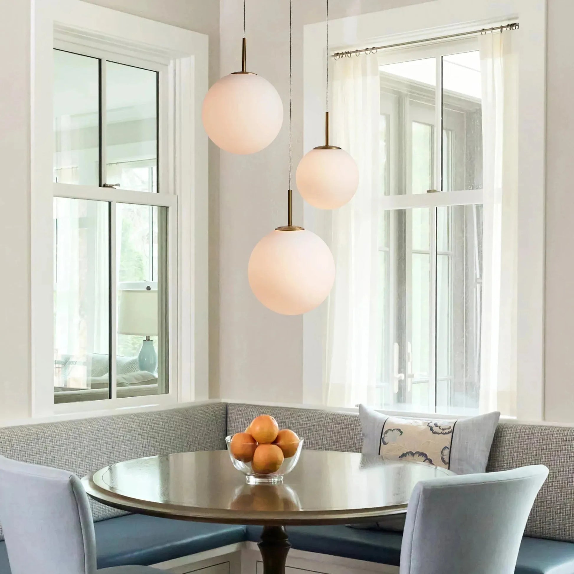 - Expertly crafted glass globes drop from modern satin brass hardware in our Casen Lighting Collection. Each globe is mouth blown by our artisan partners and features an integrated LED light that illuminates the glass from within, bringing a unique, organic touch into your home.