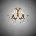 - Our stunning Celine Chandelier is adorned with 18 crystal drops that shimmer when illuminated. Its grand scale and warm, gold leaf finish make Celine a focal point in any home.