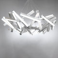 Composed of a chaotic arrangement of rectangular blocks, the Chaos LED Round Chandelier from Modern Forms is a dynamic addition to any room. Made of aluminum and acrylic, the blocks contain integrated LED lamps that softly brighten the space, while ultra-thin aircraft cables suspend the fixture without detracting from its visual impact. Station above a dining room table, living room seating group, or primary bed for a well-lit and eye-catching interior.