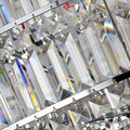 The whole light body is made of high-quality K9 crystal and stainless steel. It is designed into a luxury modern style. It is absolutely stunning no matter light turns on or not.