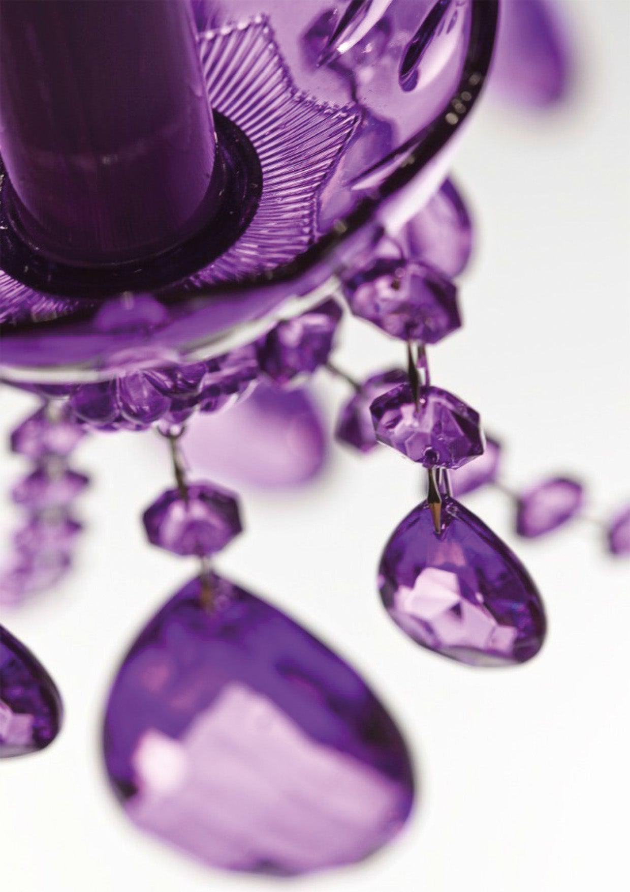 This elegant chandelier is richly decorated with the highest quality half cut glass. You can choose to have a chrome or gold plated metal body covered with transparent glass or a painted metal frame with coloured glass.