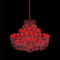 This elegant chandelier is richly decorated with the highest quality half cut glass. You can choose to have a chrome or gold plated metal body covered with transparent glass or a painted metal frame with coloured glass.