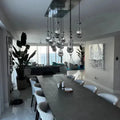 If you are hanging the chandelier above your dining table or kitchen island, you can also decide the size of the chandeliers based on the size of your dining table or kitchen island. We generally recommend that the length or diameter of the chandelier should be between 1/2 and 3/4 of the length of the dining table or kitchen island.