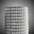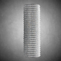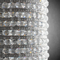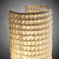 - Our wall sconce is crafted from an iron frame and K9 glass crystal beads, entwined with strands of alternating sized faceted crystal beads made from K9 glass. Thousands of faceted, hand-wrapped smoke glass beads encase the steel frame, creating a luminous column of refracted light.