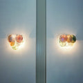 Colorful Murano Disc Wall Sconce, Enhance your space. This wall sconce features a Colorful glass disc that reflects stunning colors. Add a touch of beauty and ambiance to any room with its beautiful light and mesmerizing effects.