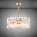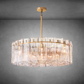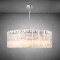 | Crafted of solid cast glass, the collection's interlocking planes recall the geometric precision of the midcentury International Style. A study in repetition and rhythm, the linear form employs open space to lend a weightless feel. Gently rounded corners on the fluid, rippled panes subtly soften the outline, while diffused light glows from within. |
