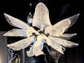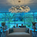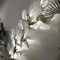 The body of the artistic chandelier is made of resin and iron material.This chandelier features its clear flower design trimmed with eighteen resinous, vivid petals, whose veins are elaborately carved as if it were real.Each petal contains one single bulb, diffusing and softening the illumination in a moderate and gentle way, creating an elegant and graceful ambience in any space.Ideal for modern lighting in the living room, girl's bedroom or dining room.