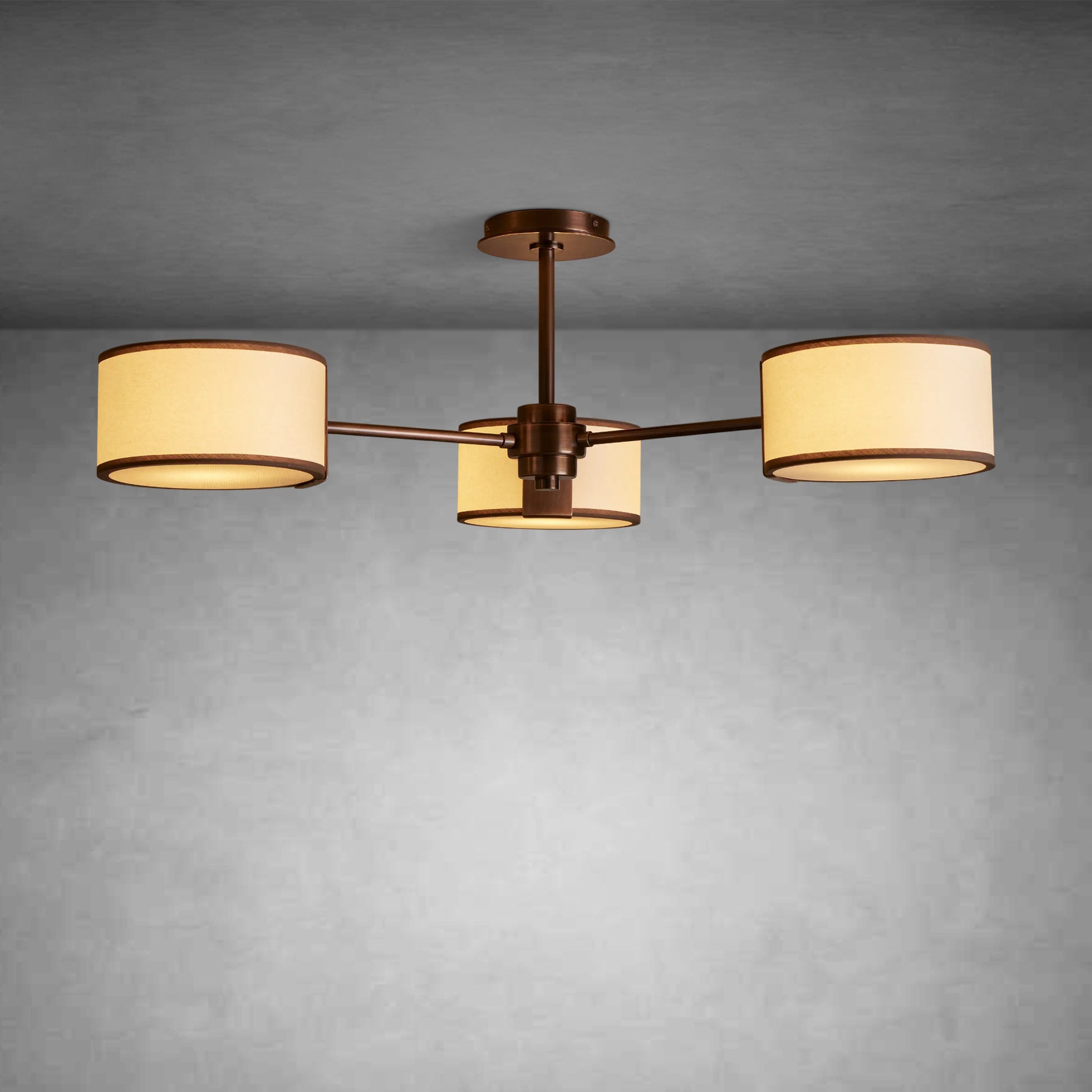 - Bronze fixtures include a white linen shade with black trim; light bronze fixtures include a cream parchment shade with brown trim.