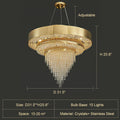 The whole light body is made of high-quality K9 crystal and stainless steel. It is designed into a luxury modern style. It is absolutely stunning no matter light turns on or not.