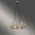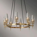 | The David Glass Round Chandelier Brass is machined from solid brass. All parts are hand polished and patina'd. The reeded borosilicate glass shades are notched to delicately rest on each brass arm. |